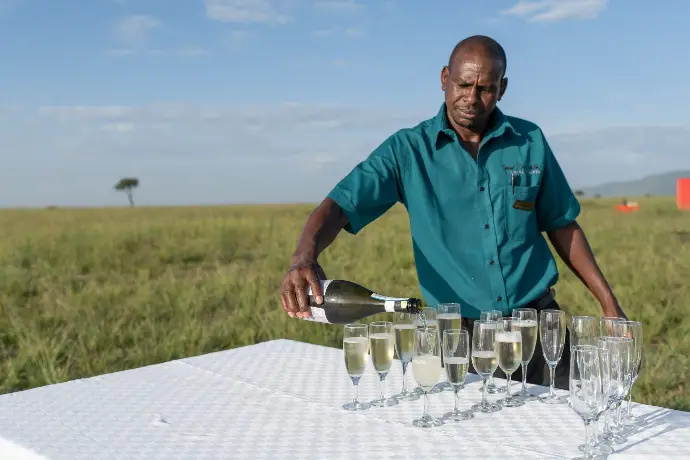 After landing, toast your flight with bubbly and enjoy a wonderful al fresco bush breakfast cooked fresh for you out on the plains - an experience in itself. Afterwards enjoy a leisurely drive back to your camp or lodge.